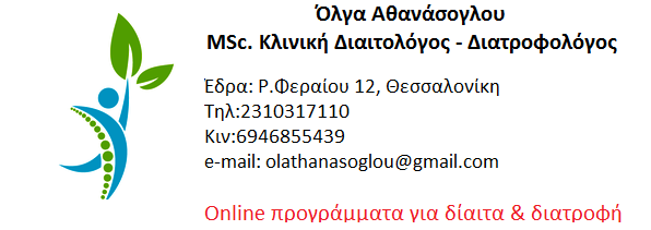 ΑΘΑΝΑΣΟΓΛΟΥ ΟΛΓΑ - MSc ΚΛΙΝΙΚΗ ΔΙΑΙΤΟΛΟΓΟΣ - ΔΙΑΤΡΟΦΟΛΟΓΟΣ